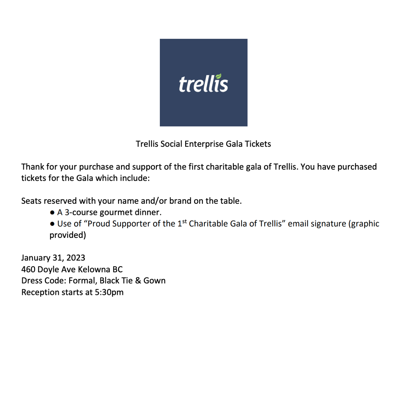 This article provides a preview of the automated emails and attachments your donors receive when purchasing event tickets through Trellis.