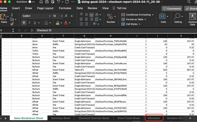 6. Save the file as "Checkin Attendee Bulk Upload <fundraiser name>.csv". This will help us identify the specific event and ensure proper processing.