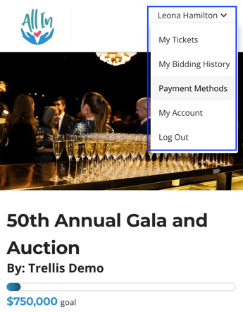 If you've previously made a purchase or participated in a silent auction on Trellis, a payment method is likely already on file.