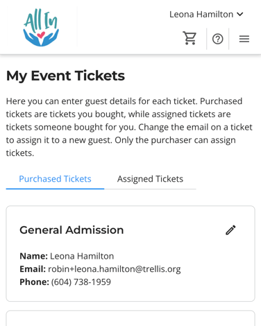 If tickets were assigned to you, confirm your ticket details are complete, including any questions from the organization (such as dietary restrictions). Learn how to view and edit your ticket.