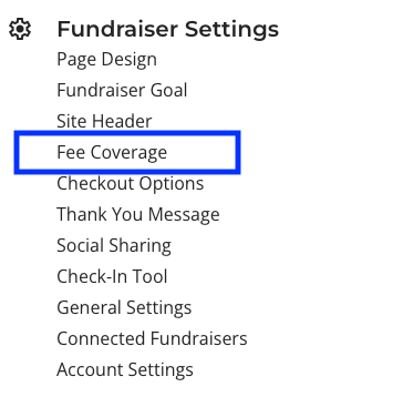 2. From the sidebar, under Fundraiser Settings go to Fees Coverage