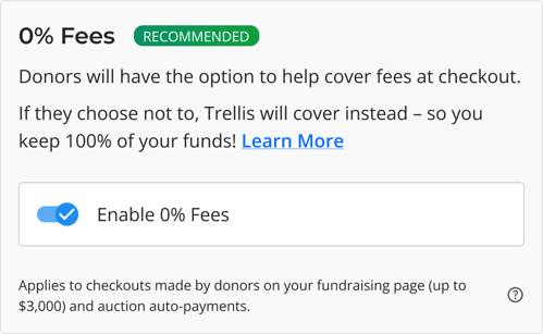 This is a special feature that gives donors the option to help cover fees at checkout. If the donor decides not to, Trellis will cover the fees instead.