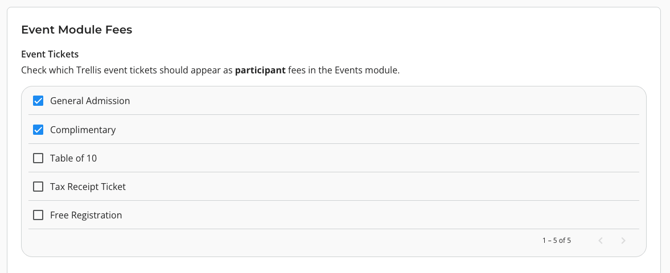- Select if you would like any Event Tickets or Items for Sale to appear as fees in RE NXT.