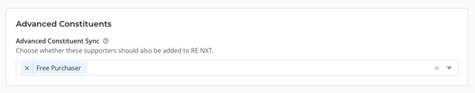 - Ensure Free Purchaser is selected under Advanced Constituent Sync