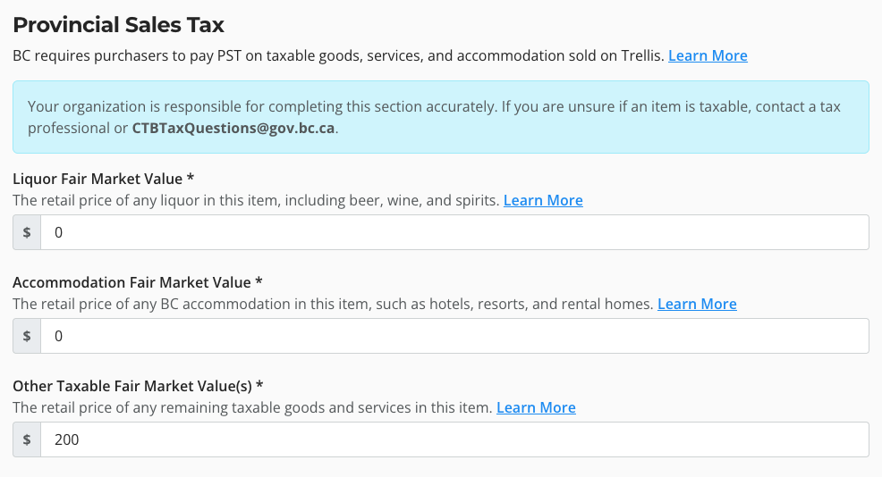 If you're unsure if an item is taxable, we recommend consulting your accountant or tax advisor, or the BC Ministry of Finance at CTBTaxQuestions@gov.bc.ca. Trellis cannot provide tax advice.