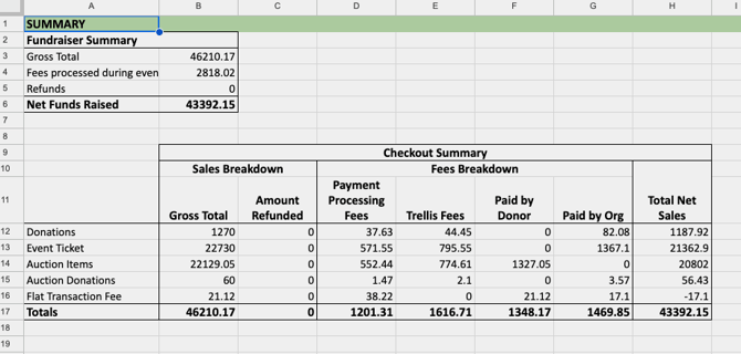 - Summary Sheet: This is an aggregate summary of your fundraiser data.