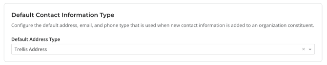 When new contact information is provided for an existing constituent, Trellis will not override or delete any current information. Instead, additional contact details will be added. In this section, you can select titles for the new default information used.