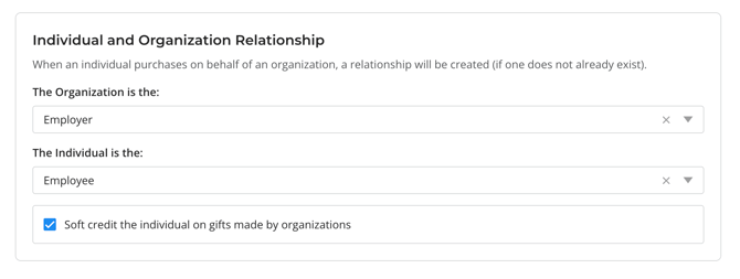 - If enabled, soft credit the individual constituent for the gift