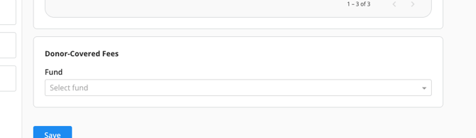 5. If your configuration level is set to By Fundraiser Driver, scroll to the bottom of the page to configure a Fund for Donor-Covered Fees.