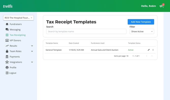 Create and manage tax receipt templates that can be reused across multiple fundraisers.