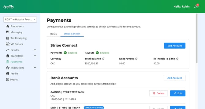 Connect your Trellis account to Stripe Connect and add your bank details so you can collect payments and receive payouts.
