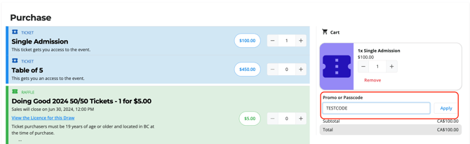 Note: Tax receipts will not generate during promo code test purchases, since the transaction is free.